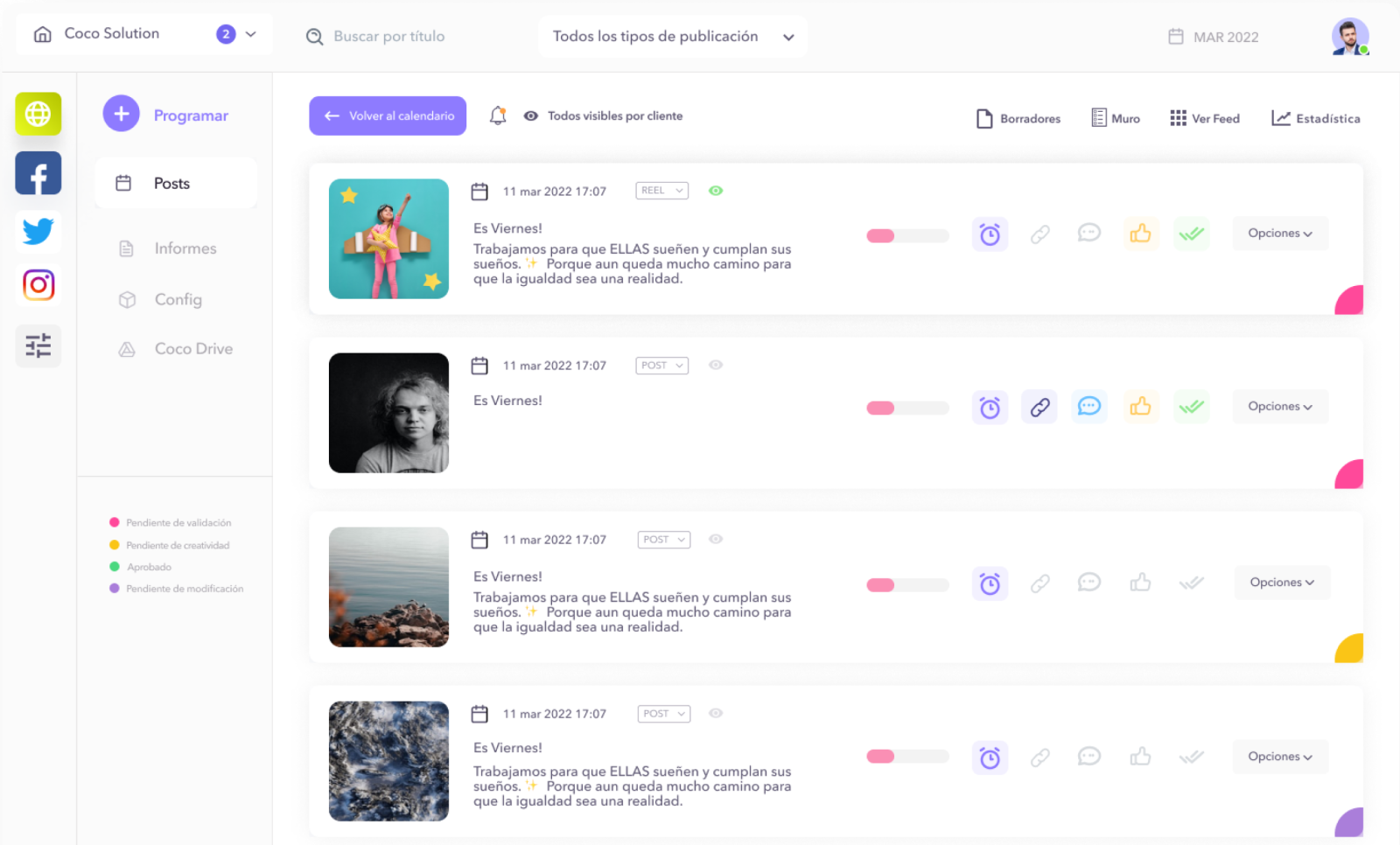 La mejor aplicación para teletrabajar tus redes sociales son perder la comunicación con los clientes. Publico, gestiono contenido y el cliente valida todo. 100% recomendable.